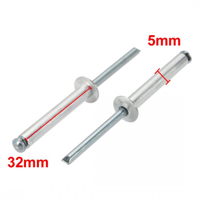 重量:87g; 仕上げ:亜鉛メッキ【属性3】フランジ径:9.3mm; 特徴:オープンエンド【属性4】リベットボディーサイズ:32x 5mm (L * D)。