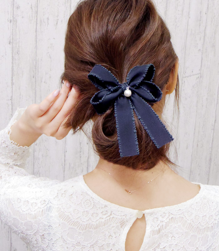 追跡可能メール便対応 【ヘアゴム】メディオ[リボン パール レース ロング 大きめ 結婚式 パーティ ヘッドアクセ ヘアアクセサリー 髪飾り][MBL]20170926