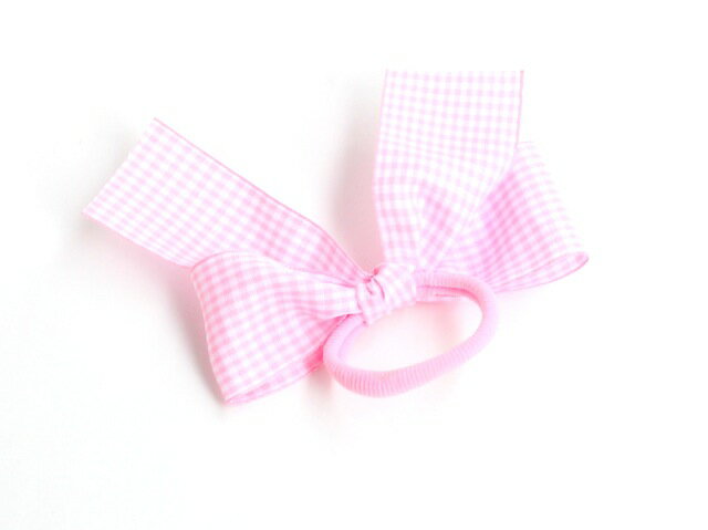 ギンガムチェックリボン ヘアゴムラージ《ピンク》