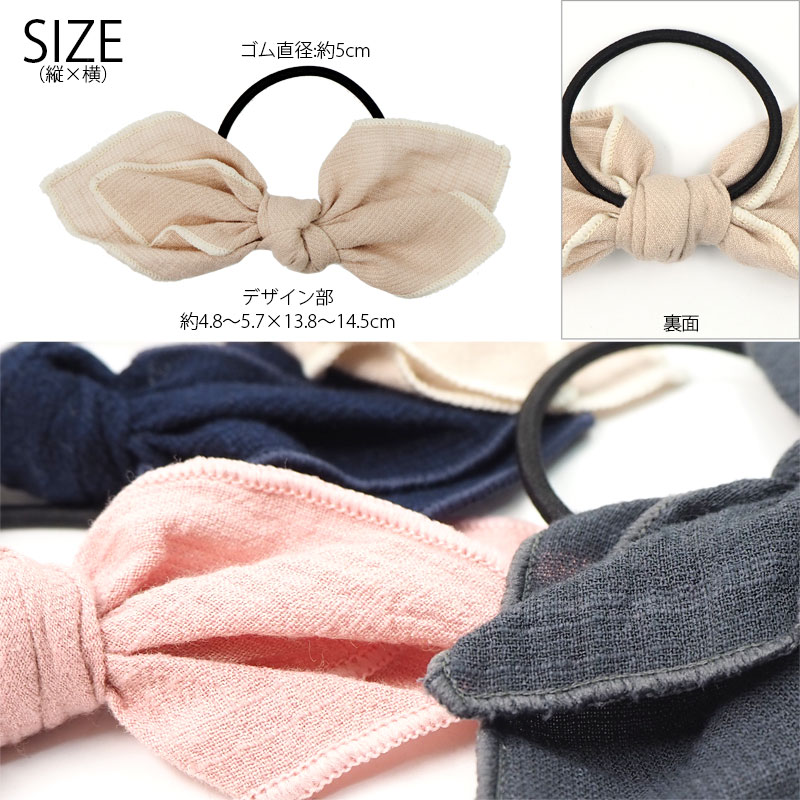 商品名 ポニー リネン風 ダブルリボン (dpy-266) STAFFコメント コットンのダブルリボンが可愛いリボンヘアゴム♪